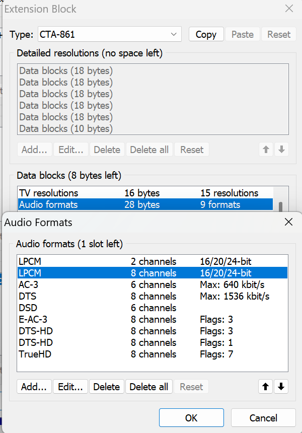 首先看到EDID CTA-861的Audio formats部分,这里写明了设备支持的音频格式。