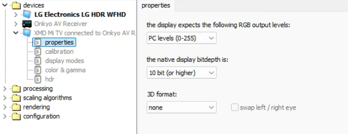 校色,如上文所言,不要使用madVR的校色,有兼容性问题,现在的Windows色彩管理已经足够精确,使用Windows自带的色彩管理即可,让madVR不要处理色域。