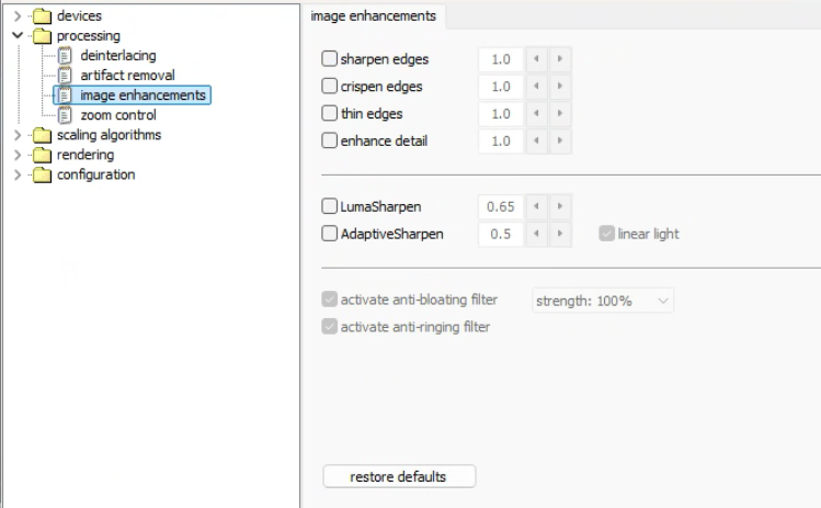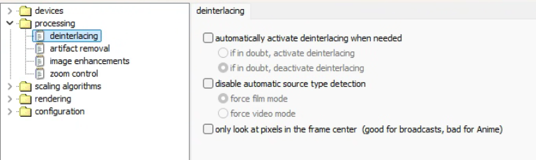 硬件/软件去隔行:不启用,下面交给madVR处理。