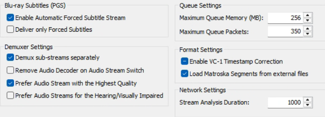 混音器设定:分离混合的子流,一般启用,在蓝光光盘的truehd音频流中有一条ac3的子流,这个选项用于分离truehd和ac3两条流。